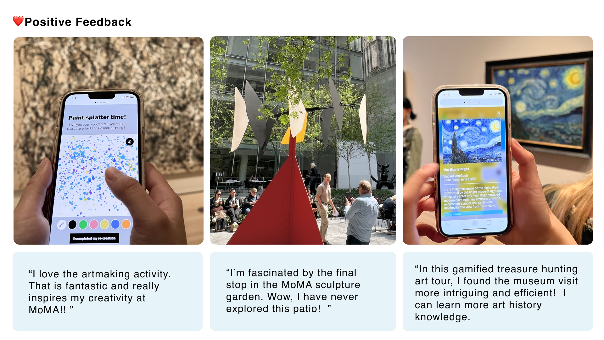 In order to discover the real application and feedback of the current MoMA digital tour guide, we went to the museum for field observation and took many meaningful notes. We discovered that visitors often overlook education activities and art tours in the patio gardens.