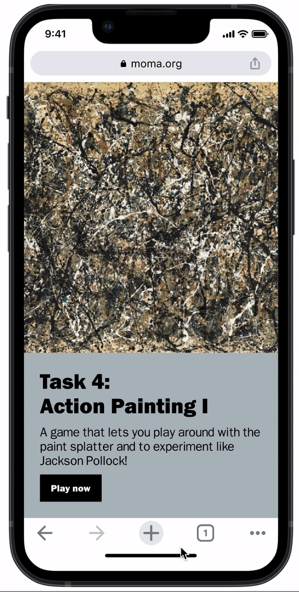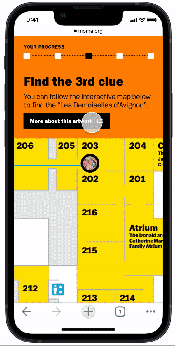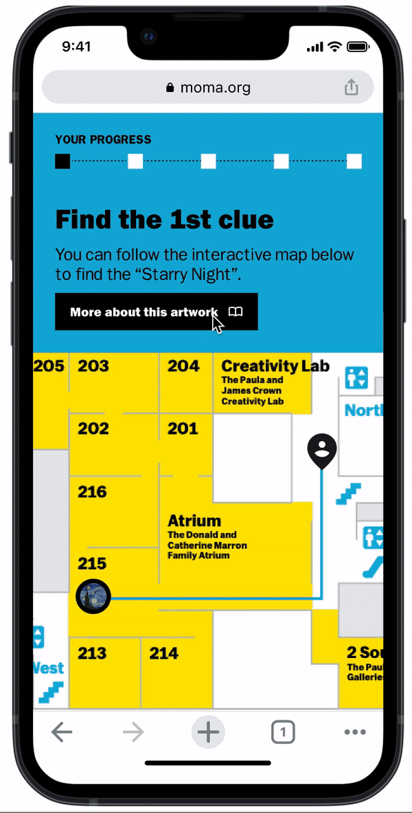 On top of the original Moma digital tour, we have added an additional option: Creative Art Tour, which allows users to choose between traditional official content or gamified new experiences.