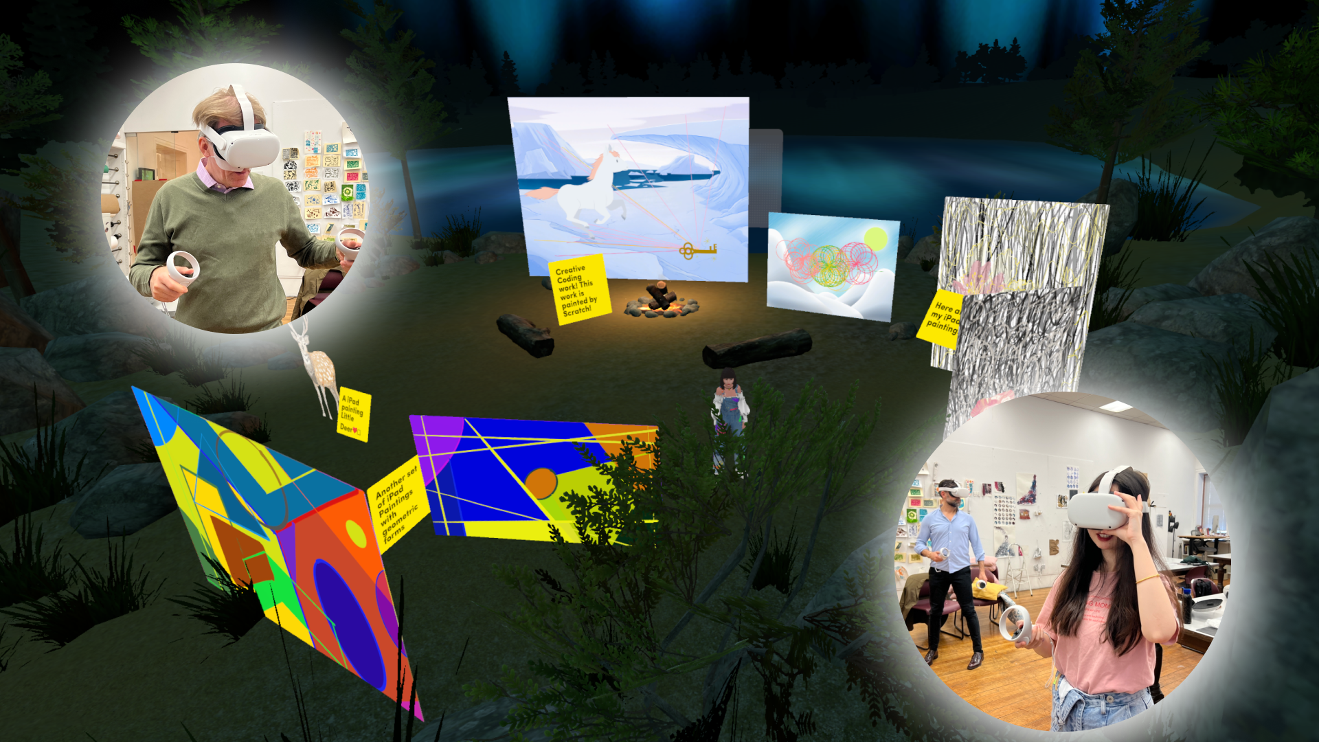Through this project, I aim to push the boundaries of what's possible in the world of digital art and create an experience that is both visually stunning and intellectually stimulating. You can access the space by pairing it with your VR glasses or clicking the link on your laptop.
